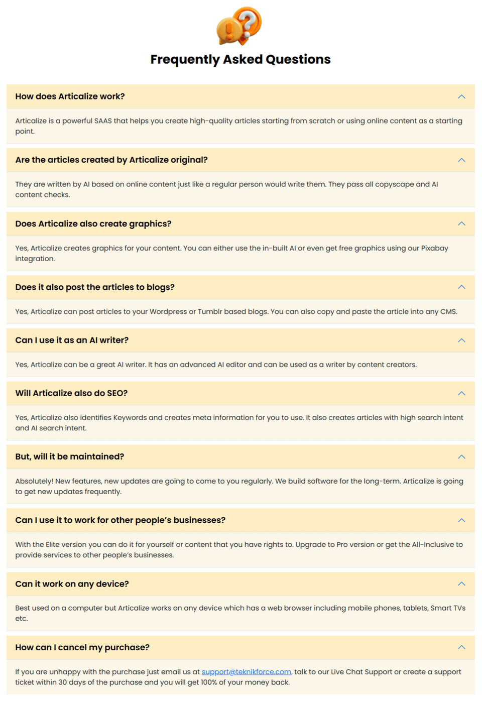 | Front-end Price | $34 (one-time payment) | Product Official Sale Page | Visit Front-end Salespage | Articalize Bundle (FE+All OTOs) | Visit The All-Inclusive Bundle Deal |