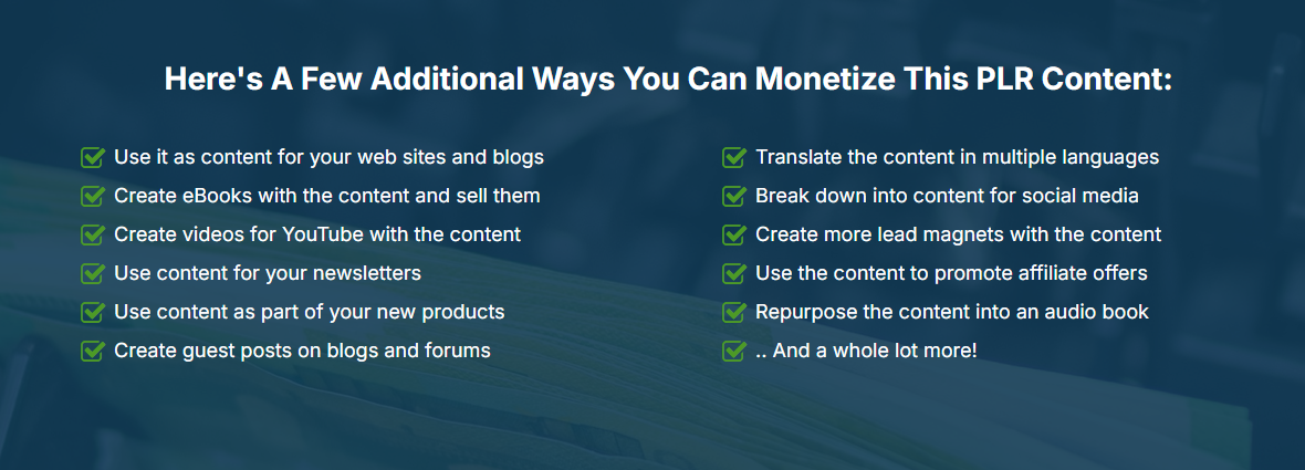 I’ll be straight with you: this is one of the better PLR packages I’ve seen in a long time. It delivers on its promise of providing a high-quality, ready-to-use lead magnet that can save you an incredible amount of time, money, and stress. The content is solid, the assets are professional, and the whole thing is incredibly easy to implement.